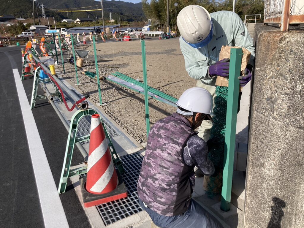 道路の共用開始に向けて、防護柵の設置工場行っております。 こちらの関係の負担工事が終われば、検査を行い、共用開始へとシフトしていく...